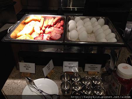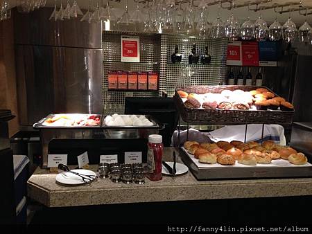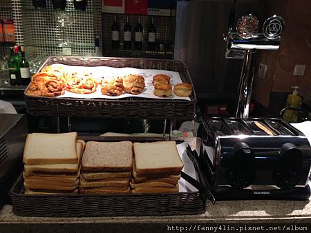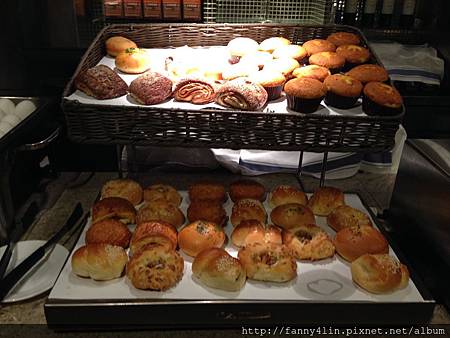 有薯餅/ 培根/火腿/水煮蛋/各式鹹麵包(至少有5種選擇喔) 跟甜麵包/吐司