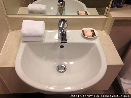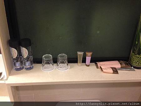 所有的備品跟免費的水都放在馬頭後方的檯子上